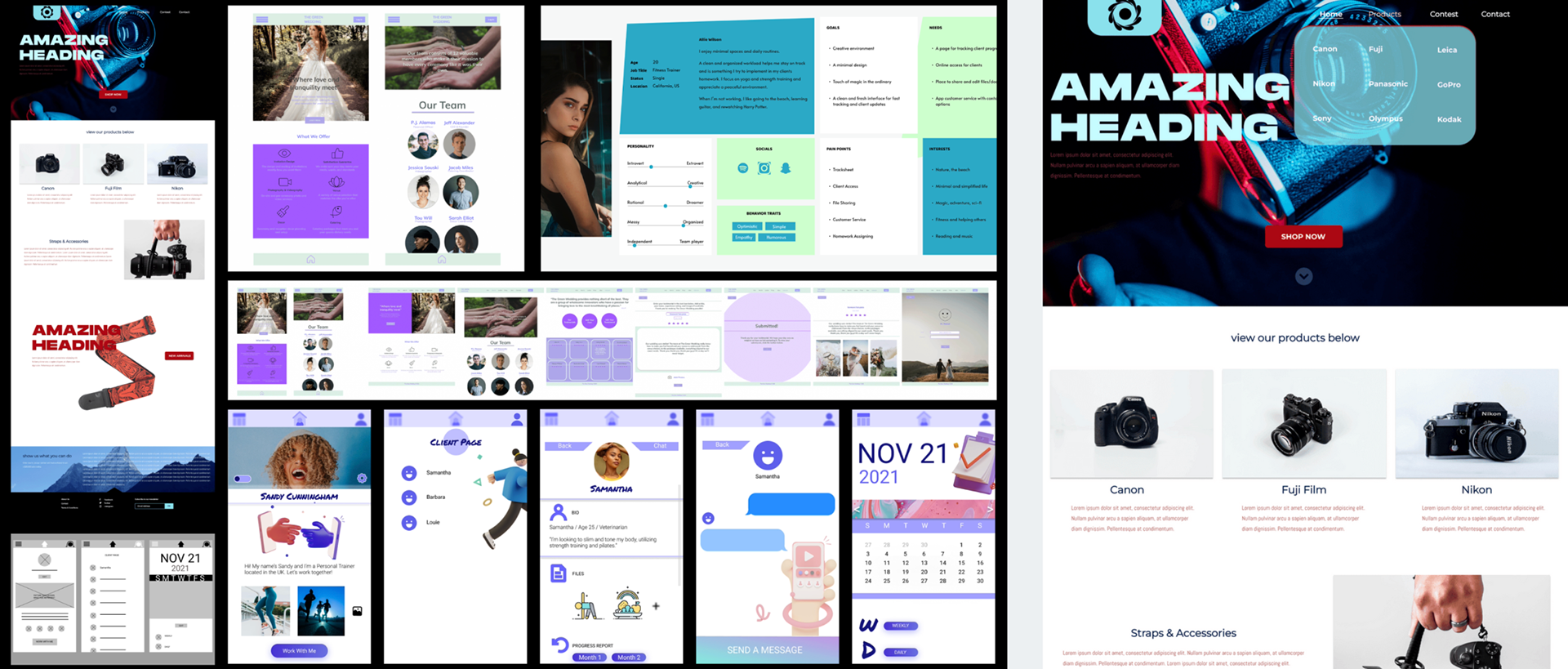website & user experience mockups to explore ideas and trending themes with the teamÂ